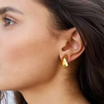 The design is particularly noteworthy; featuring a chunky hoop style that mimics the elegant shape of a water droplet. The smaller version is perfect for everyday wear, while the larger option is ideal for those who want to make a standout statement. Both styles are crafted to ensure they do not deform over time, resisting tarnishing and fading due to the hypoallergenic properties of the materials used.