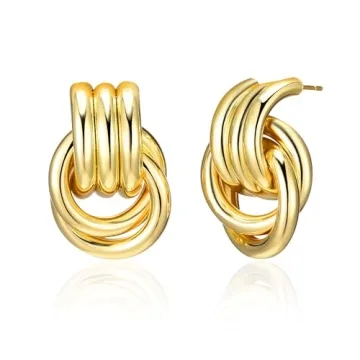Show more Introducing the stunning Chunky Gold Knot Earrings for Women, a true embodiment of elegance and sophistication that transcends current trends. These gorgeous earrings showcase an innovative geometric design featuring a chic twisted knot entwined with a dynamic long link chain. Renowned for their bold visual appeal, these earrings are perfect for the modern woman who isn’t afraid to express her personality through jewelry. Whether you're stepping out for a glamorous evening or seeking to elevate your everyday attire, these statement earrings serve as the perfect finishing touch.