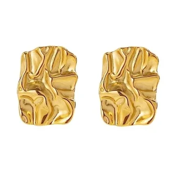 Chunky Gold Rectangle Stud Earrings for Women, Dainty Thick Stud Earrings, Minimalist Geometric Earrings for Women (Gold A)
