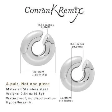 Show moreIntroducing the exquisite Chic Chunky Gold Ear Cuffs, a must-have accessory for any fashion-forward individual. These stunning non-piercing ear cuffs are carefully crafted from high-quality stainless steel and enriched with a radiant gold finish that radiates sophistication. Best known for their remarkable durability and elegant aesthetics, these ear cuffs exemplify what it means to have luxurious yet comfortable jewelry that suits any occasion. With a generous diameter of 1.18 inches (30 mm) and a lightweight design of just 0.34 oz (9.8 g), they provide the perfect balance between statement-making presence and effortless wearability.