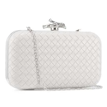 Show more Introducing the CHUNLI Clutch Purses for Women - the ultimate accessory for every stylish woman. This chic woven bag is meticulously designed with both elegance and functionality in mind. Featuring a unique gold/silver branch clasp, this clutch purse adds a touch of luxury to any outfit, making it a perfect companion for formal occasions such as weddings, parties, or elegant nights out. Crafted from high-quality PU leather, it not only looks stunning but is also built to last.