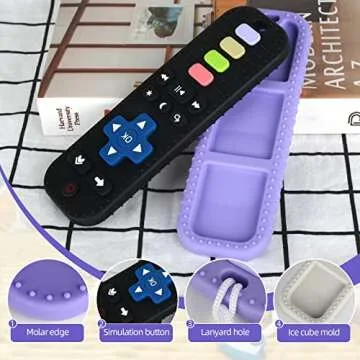 Chuya Baby Remote Control Teether Toy Chew Toy for Babies 0-24 Months Teething Relief Baby Toys for Infants Black+Purple