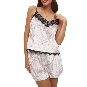 Show moreIndulge in luxurious comfort with the CHYRII Velvet Pajamas for Women, a captivating set that marries elegance with relaxation. Made from carefully selected soft velvet fabric, these pajamas are designed to caress your skin with their gentle touch, ensuring a sumptuous feel that you’ll love. The set features a stylish cami top with a deep V-neck and delicate lace embellishments, which elegantly highlight your feminine curves, whilst the high-waisted shorts with an elastic waistband provide the ultimate freedom of movement for a perfect night’s sleep. Whether you’re lounging at home or enjoying a serene night away, this ensemble elevates your bedtime attire to new heights.