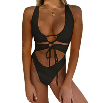 Show moreIntroducing the CHYRII Women's Black Sexy Cutout Lace Up Backless High Cut One Piece Swimsuit Monokini L, where fashion meets functionality! This swimsuit is designed with the modern woman in mind, offering a stunning combination of style, comfort, and confidence. The premium double nylon fabric ensures a soft, stretchy feel while providing excellent support, making every swim or beach day enjoyable. With a chic, high-cut design and cheeky bottom, this suit beautifully enhances your silhouette, featuring a deep V-neckline that adds a touch of sophisticated allure. The adjustable straps allow you to customize the fit, ensuring you feel secure and stylish, whether lounging poolside or splashing in the waves.