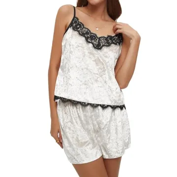 Show moreTransform your sleep wear collection with the luxurious CHYRII Women's Lace Pajamas – a splendid blend of elegance and comfort meticulously crafted for the modern woman. Crafted from an exquisite light-weight velvet and satin fabric, this sleepwear set is not only visually stunning but also offers a sumptuous touch against your skin. The beautiful champagne color encapsulates warmth and sophistication, making it perfect for those serene nights at home or adventurous getaways. The deep V-neck and alluring low back add a hint of romance to your sleepwear collection, showcasing an impeccable balance of style and functionality. Ultimate relaxation awaits you as the unrestricted camisole design and elastic high-waisted shorts promise an effortless fit that is both chic and cozy.