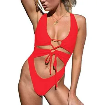 Show moreIntroducing the CHYRII Women's Sexy Cutout Lace Up Backless High Cut One Piece Swimsuit Monokini in a stunning red hue! This exquisite swimsuit is not just a swimwear piece; it's a **style revolution** designed to accentuate your natural curves while offering unparalleled comfort and support. Made from a unique blend of **top-quality nylon fabric**, its smooth texture is soft against your skin but also durable enough to withstand the rigors of summer fun. Enjoy a day by the pool or a leisure outing at the beach with a piece that hugs your body in all the right places, giving you a **flattering silhouette** that instills confidence and elegance.