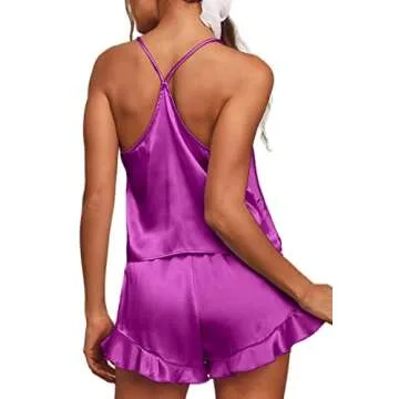 CHYRII Women's Sexy Silk Satin PJS Racerback Cami Tops and Ruffled Hem Shorts 2 PCS Pajamas Sets Nightwear Purple XL