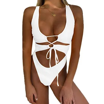 Show moreIntroducing the CHYRII Women's White Sexy Cutout Lace Up Backless High Cut One Piece Swimsuit Monokini, a versatile addition to your summer wardrobe that promises to make you feel both stylish and confident. Crafted from high-quality double nylon fabric, this swimsuit features a unique blend of stretch, softness, and durability that hugs your curves perfectly while allowing for unrestricted movement. The bold high-cut design not only elongates your legs but also flaunts your figure with a deep V-neck, striking cutouts, and a chic lace-up back. It's the ultimate functional fashion piece, ideal for everything from a beach party to a relaxing day by the pool.