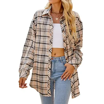 CHYRII Women's Button Down Flannel Shirt - Long Sleeve Plaid Shacket