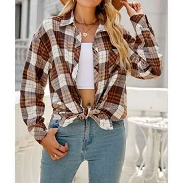 Show more Introducing the CHYRII Women’s Button Down Flannel Shirts, the ultimate blend of comfort and style for today’s fashion-forward woman. Crafted from high-quality 100% polyester, this lightweight flannel shirt is designed to provide a soft and cozy feel against your skin. The charming buffalo plaid check pattern not only captures the essence of casual chic but also makes it an ideal choice for a variety of occasions. Featuring a turn-down collar, front pockets, and long sleeves, it elegantly transitions from autumn strolls to winter gatherings. This versatile piece can be worn as a classic button-down shirt or layered as a chic shacket for added warmth and flair.