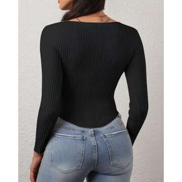 CHYRII Womens Sexy Fall Fashion Twisted Tops Ribbed Knit Winter Pullover Sweater Going Out Crop Tops Black S