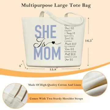 CIAEXRN Aesthetic Canvas Tote Bag for Mom Mommy, Beach Bag Shopping Bag Shoulder Bag Reusable Grocery Bag for Gym Vacation Office Travel, Inspirational Christian Gifts for Woman Mommy Mothers -A16
