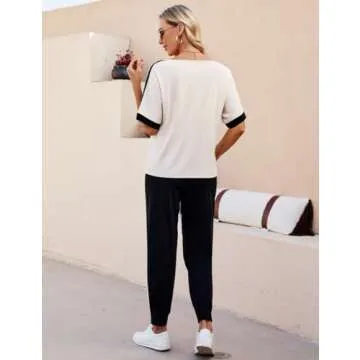 Introducing the CiCiBird Women Casual Basic Lounge Set, your new favorite sweatsuit that effortlessly combines comfort, style, and versatility. Designed with a modern touch, this cozy jogger set features a chic colorblock design that elevates your casual look whether you're lounging at home or out running errands. The top is crafted with fashionable batwing sleeves, while the pants are detailed with a trendy striped side design and a practical beam foot finish, making it perfect for any casual...