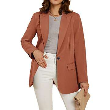 Cicy Bell Women's Casual Long Sleeve Blazer Open Front Loose Buttons Work Office Jacket (Khaki,Medium)