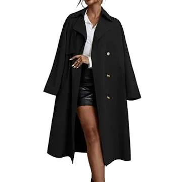 Cicy Bell Women's Double Breasted Long Trench Coat Lapel Midi Jacket with Belt Overcoat