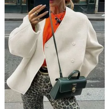 Cicy Bell Womens Cropped Wool Jackets Fall V Neck Short Pea Coats Single Breasted Outerwear Winter Outfits