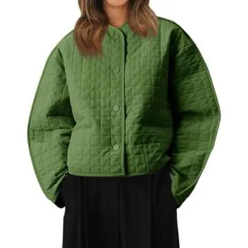 Cicy Bell Womens Lightweight Quilted Jacket Fall Casual Collarless Puffer Coats Long Sleeve Button Down Outerwear