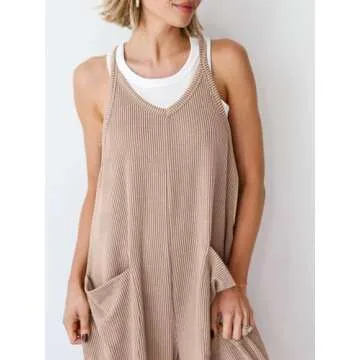 Cicy Bell Women's Summer Ribbed Knit Jumpsuit - Casual V Neck with Spaghetti Straps