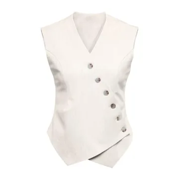 Cicy Bell Womens Waistcoat Vest Sleeveless Blazers V Neck Button Up Asymmetrical Hem Work Office Suit Vests