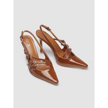 CIDER Buckle-embellished Slingback Pointed Toe Heels: Stylish Comfort in Brown