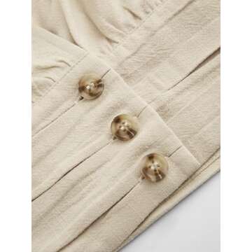 CIDER French Riviera Vacation V-Neck Ruched Button Corset Solid Tank Top: Beige, M