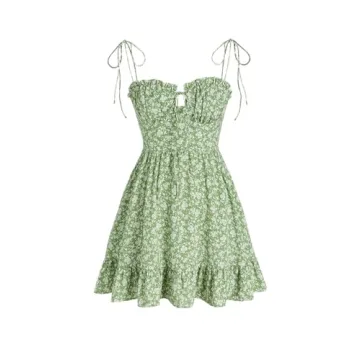 The mini dress features a charming ditsy floral pattern that injects a playful spirit into your summer wardrobe. One of the standout attributes of this dress is its unique random floral print, which means no two pieces are alike, allowing you to showcase your individuality and style. The refreshing green hue enhances the cheerful aesthetics ensuring you stay on trend.