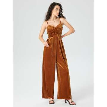CIDER Velvet Jumpsuits for Women Wide Leg V Neck One Piece Jumpsuit 2025: Orange, S