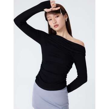 CIDER Women's Asymmetrical Top Off The Shouler Long Sleeve Shirts Ruched Going Out Crop Tops