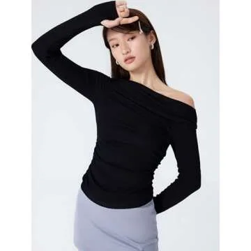 Show moreIntroducing the CIDER Women's Asymmetrical Top Off The Shoulder Long Sleeve Shirts Ruched Going Out Crop Tops, a stylish addition to your wardrobe that perfectly balances contemporary fashion with everyday comfort. Designed with high stretch for comfort, this top adapts seamlessly to your movements, making it ideal for everything from casual outings to more sophisticated evening events. The elegant asymmetrical neckline adds a unique flair while beautifully framing your collarbone, perfect for showcasing your favorite jewelry. With its flattering ruched detailing, this top accentuates your silhouette without clinging too tightly, ensuring you look chic and feel confident no matter the occasion.