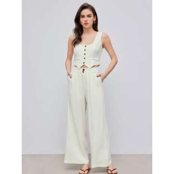 CIDER Women's Linen Blend Pants Wide Leg High Waist Business Casual Lounge Pant with Pockets