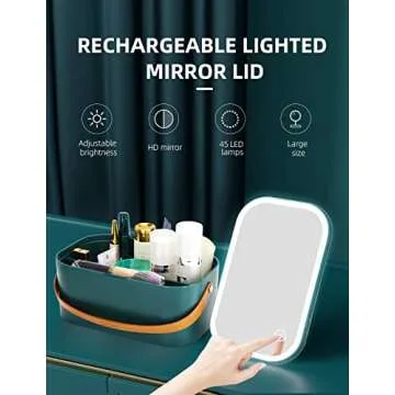 CielClair Makeup Case with Mirror and Light, Portable Makeup Organizer with Adjustable LED Lights & Mirror Lid, Cosmetic Organizer Storage with Handle for Bedroom Camping Travel, Dark Green