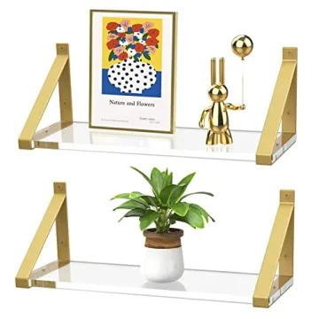 Show more Enhance your home decor with the elegant **Cilinta Clear Shelves**, a beautifully crafted set of gold floating shelves that seamlessly blend style and practicality. Made from premium 8mm acrylic, these shelves are not just functional; they are stunning statement pieces that add a touch of sophistication to any room. Whether you choose to display books, succulents, or decorative items, the minimalist classic design of these shelves ensures a harmonious fit with various interior styles.