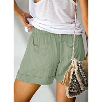 CILKOO Women's Cute Drawstring Elastic Waist Casual Solid Comfy Cotton Linen Beach Shorts Light Green US8-10 Medium