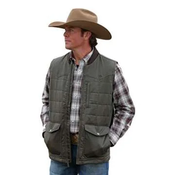 The Cinch Western Vest is made from a wax-coated fabric that provides durability and water resistance.