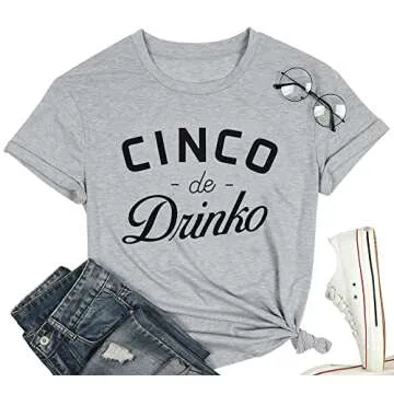 Cinco De Drinko Graphic Cute T Shirt for Women Letter Print Cinco De Mayo Tees Short Sleeve Casual Tops Grey