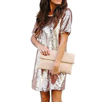 Show moreUnleash your inner diva with the Cindaisy Women Shiny Sequin Short Sleeve Dress! This stunning gown is designed not just for style but for those unforgettable moments. Made with sparkling sequins, this cocktail party mini dress radiates glamour and sophistication. The short sleeves offer a trendy silhouette, while the flattering fit accentuates your curves beautifully. Perfectly tailored in a luxurious champagne color, this dress is your go-to option for parties, events, and celebrations where you want to shine.