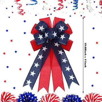 Cindeer 2 Pieces Patriotic Wreath Bow Independence Day Red White and Blue Star Burlap Topper Bows Large Independence Day Decorative Topper Bow Star Burlap Large Bows for 4th of July Party