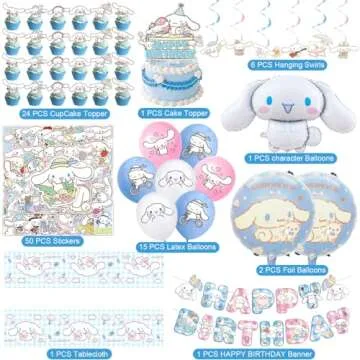 Bring the enchanting world of Cinnamoroll to life with our meticulously curated Cinnamoroll Birthday Decorations set! Perfect for creating an unforgettable birthday bash, this comprehensive party suite includes a joyful array of 101 pieces, ensuring you have everything you need for a magical celebration. The set features a delightful Happy Birthday Banner, colorful Tablecloth, an adorable Cake Topper, and an exciting selection of Balloons....