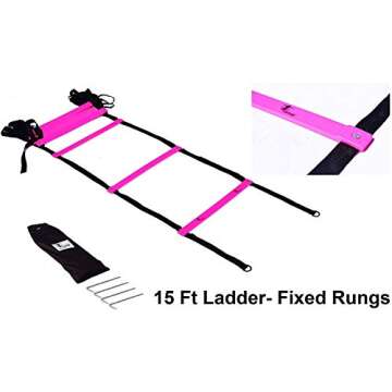 Cintz 15 Ft Pink Speed Agility Ladder Soccer Training Workout Heavy Duty Fixed Rungs