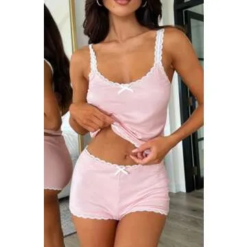 Show moreIntroducing the Cioatin Women 2 Piece Ribbed Y2K Pajama Set, an essential addition to your sleepwear collection! Tailored for the modern woman, this set combines playful style with ultimate comfort, proving that relaxation can be chic. Made from ultra-soft, breathable, and lightweight ribbed fabric, it ensures a cozy wearing experience that keeps you feeling fresh all night long. The stylish combination features a sleeveless spaghetti lace strap crop cami and high-waist elastic mini shorts, perfect for lounging in or heading out on warmer days.