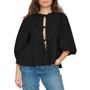 While there are numerous options available in the market, the Cioatin Bow Tie Front Blouse stands out due to its unique combination of stylish design, quality fabric, and versatile wearability. Many competitors may offer similar styles; however, this blouse's thoughtful details and flattering silhouette set it apart. The blend of trendy elements like puff sleeves and a peplum cut, paired with a functional yet fashionable bow tie front, ensures you won't just follow the trend – you will set it.