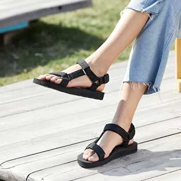 CIOR Women's Sport Sandals Hiking Sandals with Arch Support Yoga Mat Insole Outdoor Light Weight Water Shoes-U119SLX023-balck-37A