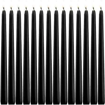 Show more Transform Your Space with CIPHANDS Halloween 10 inch Black Taper Candles - Elevate your home decor with our exquisite set of 14 dripless black taper candles. Meticulously crafted with a natural cotton wick, these candles provide a smooth, soft flame that enhances any occasion, from intimate dinners to vibrant celebrations. Each candle boasts an impressive burn time of up to 8 hours, ensuring longevity without the frustration of wax drips or smoke. Embrace the allure of the season with candles that are not just functional but also a statement piece.
