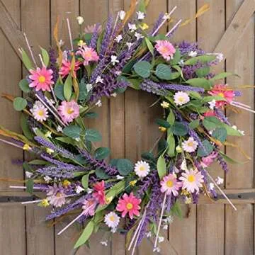 CIR OASES 22inch Artificial Spring Summer Wreath Lavender with Colorful Flowers,Green Leaves for Front Door Home Wall Party Decor