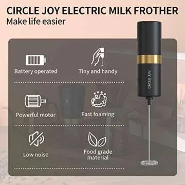 Why You will Love This Product?This frother is not just a tool; it’s a ticket to an enriching beverage experience. Imagine enjoying that velvety foam on your drinks every day, igniting a sense of satisfaction with every sip. With the CIRCLE JOY Milk Frother, you can take control over your drinks and enhance your daily rituals, while also delighting family and friends. Create warm and inviting moments that will be remembered as the delightful aroma of freshly frothed milk wafts through the air. Make coffee and beverage creations that inspire joy, creativity, and comfort at home!