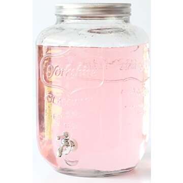 Circleware 06900 Sun Tea Mason Jar Glass Beverage Dispenser with Metal Lid Glassware For Water, Juice, Beer, Wine, Liquor, Kombucha Iced Punch and Best Cold Drinks, Classic, Yorkshire Huge 2 Gallon