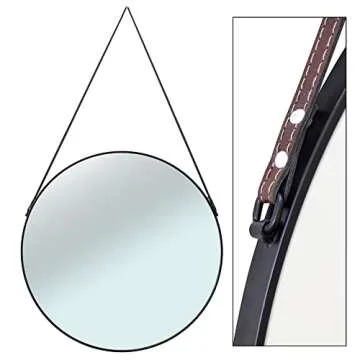 Circular Mirror Black 24 Inch - Round Mirror for Wall Decor with Decorative Hanging Leather Strap - Large Circle Mirror for Entryway, Bathroom, and Bedroom.