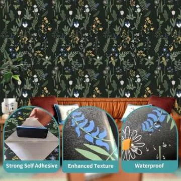 Cismmy Removable Peel and Stick Wallpaper Boho 17.5 x 118 in Floral Wallpaper for Bedroom Bathroom Easy Peel Off Wallpaper Stick on Wallpaper Contact Paper Renter Friendly Wall Paper