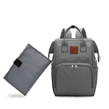 Citi Babies Grey Diaper Bag Backpack - Water Resistant, Shoulder Strap, Large Capacity, Insulated Bottle Pockets, Changing Pad, Stroller Clip- Trendy Diaper Bag for Dad & Mom or Baby Shower