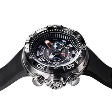 Show moreExperience the ultimate in diving technology with the Citizen Men's Eco-Drive Promaster Sea Aqualand Depth Meter Watch (Model: BN2029-01E). This iconic timepiece is crafted for adventurers who seek to explore the depths of the ocean while ensuring style and functionality combined. Engineered with a depth display up to 70 meters and a maximum depth memory, this watch is perfect for serious divers and recreational swimmers alike. Its rapid ascent alarm and auto-start dive mode are designed to promote safety in the water, making it a reliable companion for all your underwater adventures.